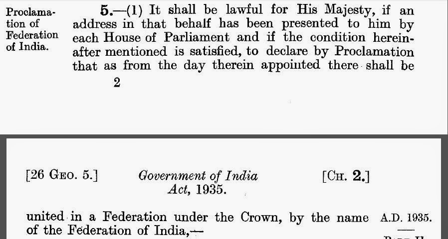 माफक विकी/गूगलपांडित्यावरून असा ग्रह होतो, की केवळ 'पुढेमागे जमेल तसे कधीतरी (ब्रिटिश हिंदुस्थान आणि हिंदुस्थानातील विविध संस्थाने यांचे) एक संघराज्य (फेडरेशन) स्थापण्याच्या उद्दिष्टा'पुरती (आणि 'ते उद्दिष्ट साध्य करण्याच्या दृष्टीने प्रयत्नरत राहण्या'पुरती) त्या अॅक्टात तरतूद होती, इतकाच काय तो त्या अॅक्टाचा नि 'संघराज्या'चा संबंध असावा, नि हे 'संघराज्य' (संस्थानिकांच्या हटवादीपणामुळे म्हणा आणि/किंवा इतर राजकीय कारणांमुळे म्हणा आणि/किंवा तदनंतर सुरू झालेल्या दुसर्या महायुद्धामुळे म्हणा) प्रत्यक्षात (निदान स्वातंत्र्यपूर्व काळात नि या अॅक्टाखाली तरी) कधीही अस्तित्वात आले नसावे. (चूभूद्याघ्या.)